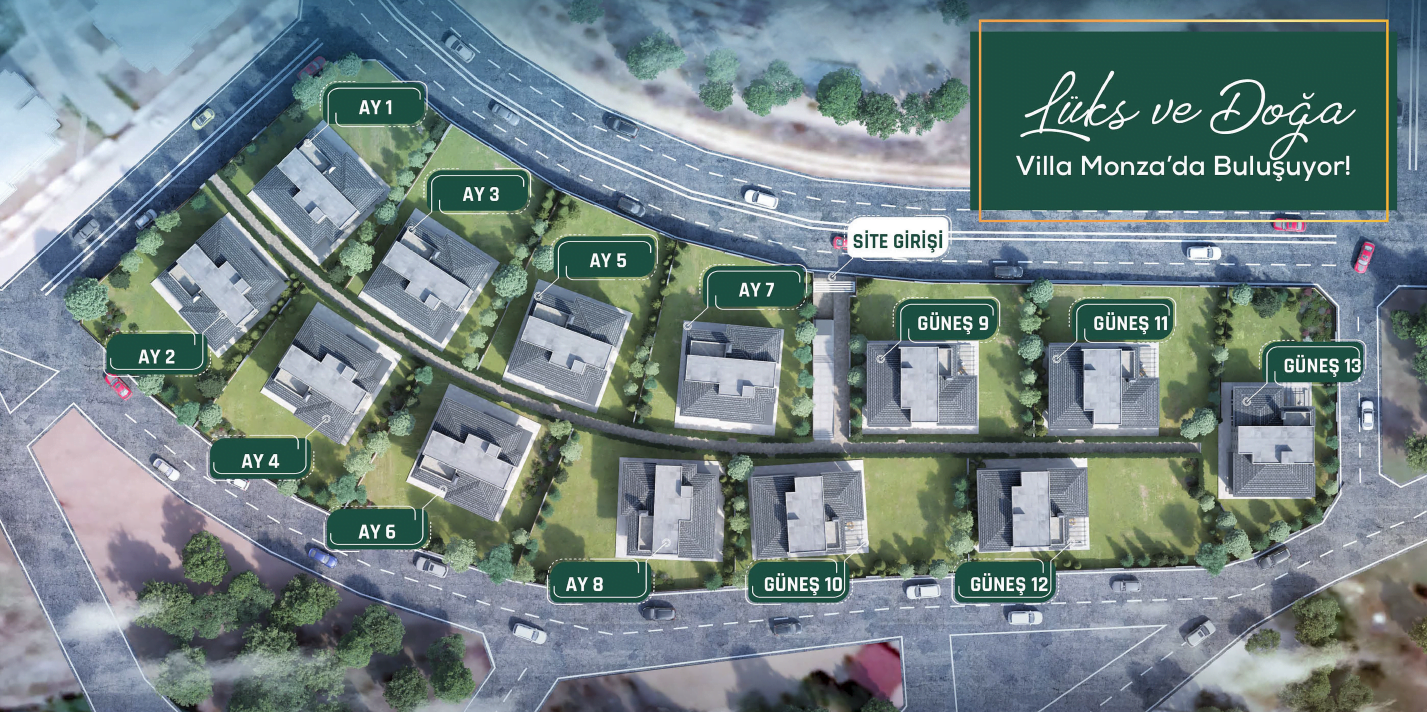 Villa Monza’da sadece ferah değil aynı zamanda özel bir yaşamada sahip olmanız için villalar arasındaki konumlandırmaya büyük önem verilmiştir.